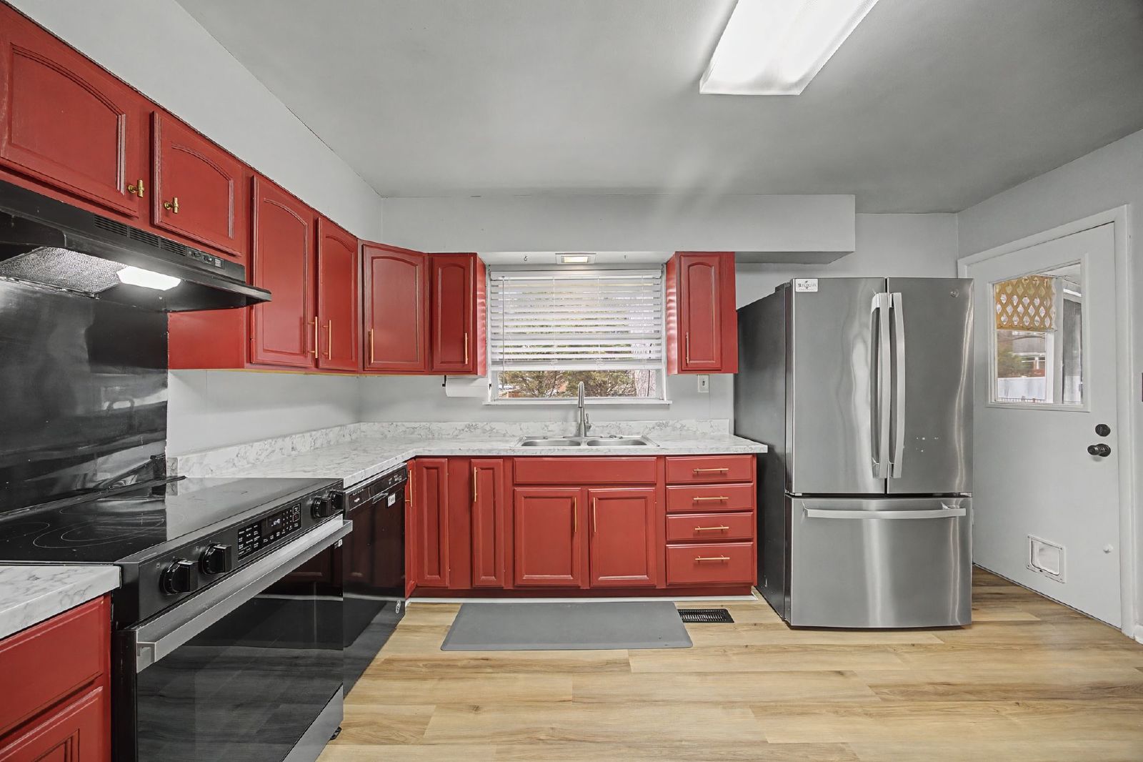 Kitchen features: stove, microwave, dishwasher, and fridge